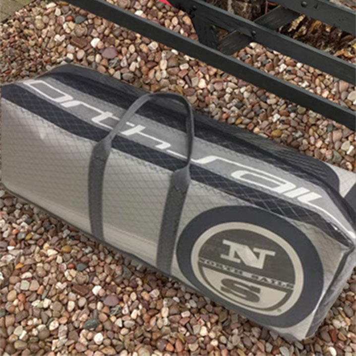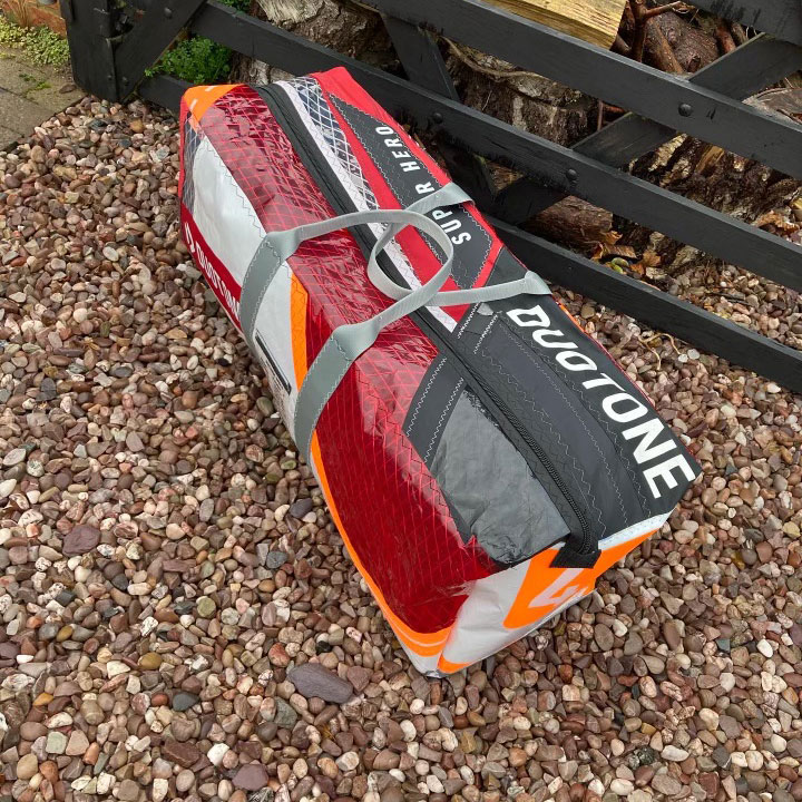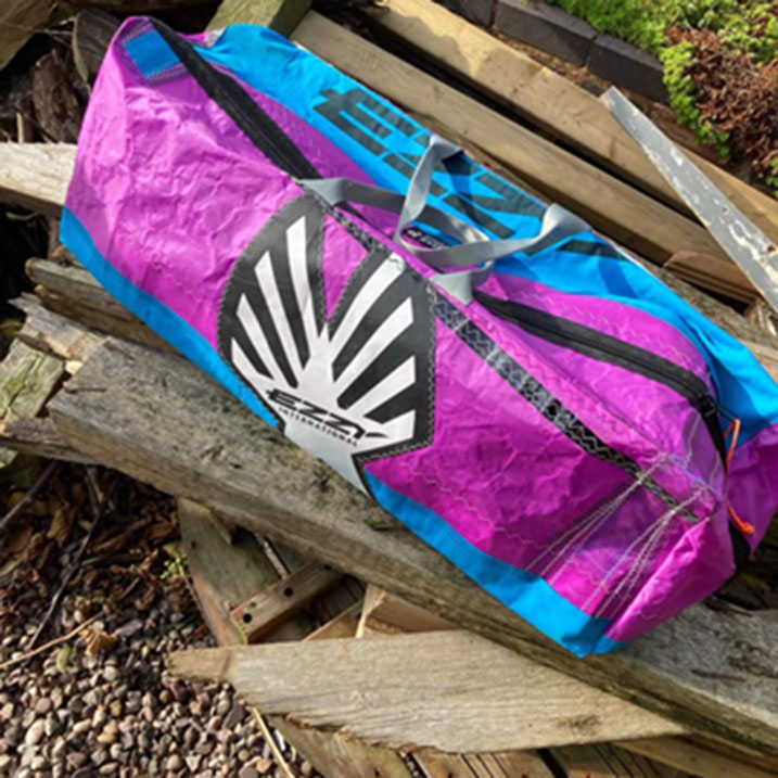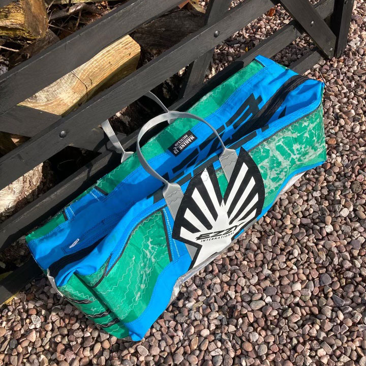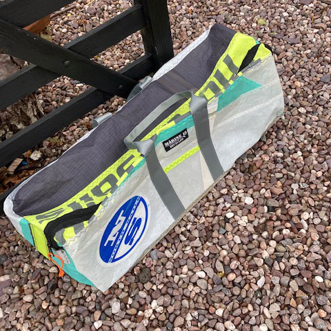 Handcrafted from recycled windsurf sails, it's light weight with strong webbing handles and the 80 litre capacity makes this the perfect kit bag that could be used for sailing or even as a travel bag. Size 90cm x 30cm x 30cm